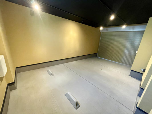 リモコン式の電動シャッターを開けるとガレージ内部はこんな感じ〜
