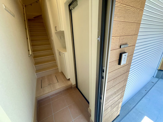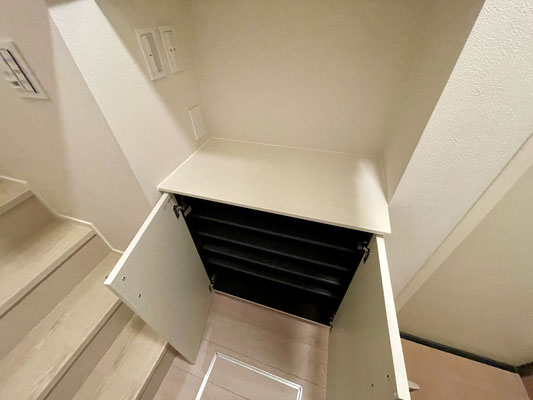その先には上下に分かれた下駄箱収納。