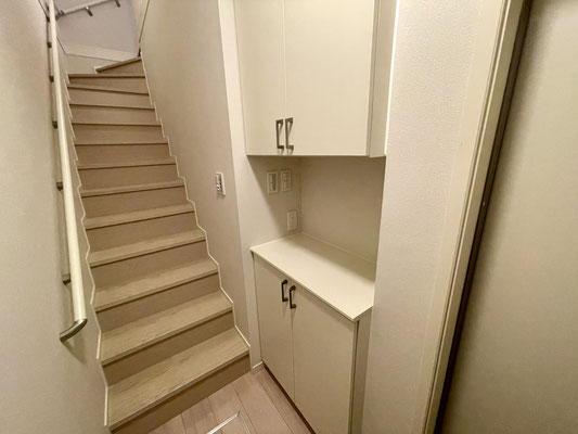 2階の踊り場にも収納アリで便利です!