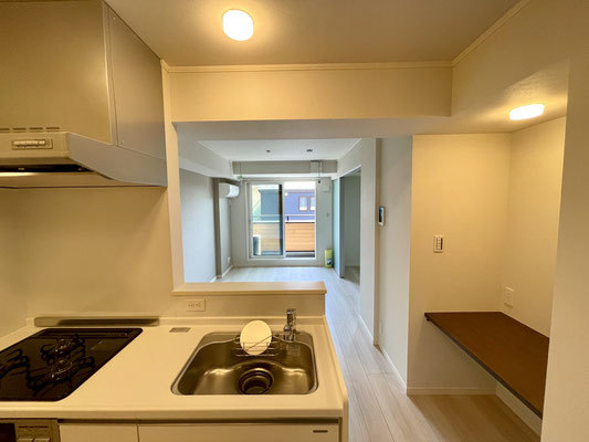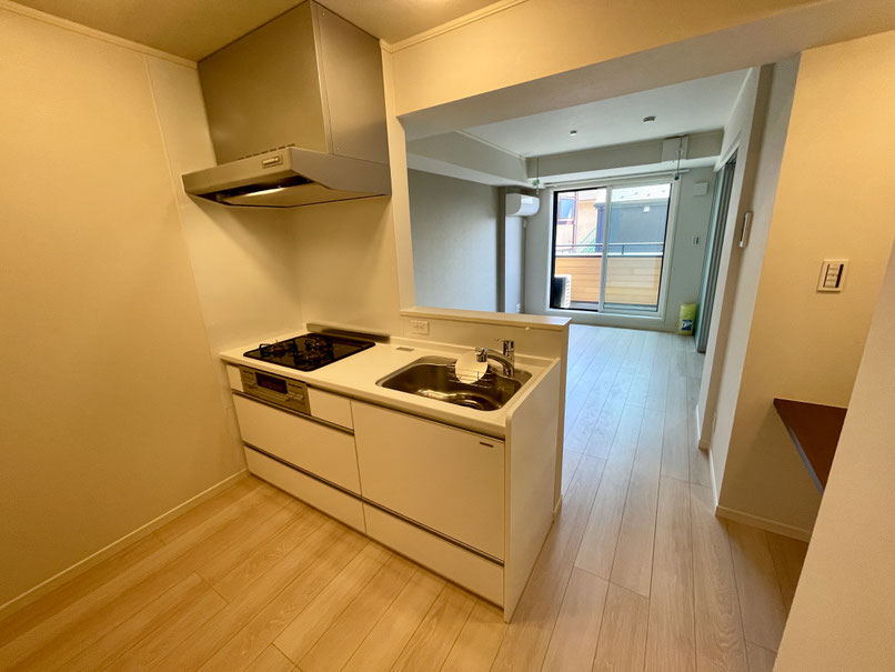 入ってすぐには対面キッチンがありお部屋の中を見渡せます。