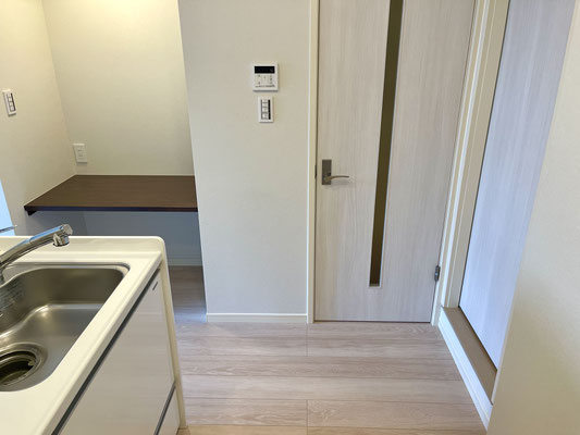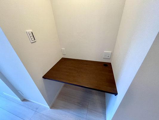 キッチンとリビングを繋ぐ短い廊下にはテレワークにも最適なデスクスペースもあります。