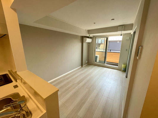 リビングスペースもキッチン同様の白系フローリング床で爽やかな空間です。