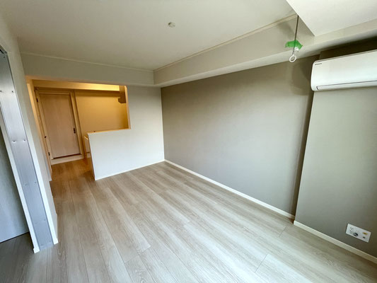 壁の一面はアクセントクロスの薄いグレー。