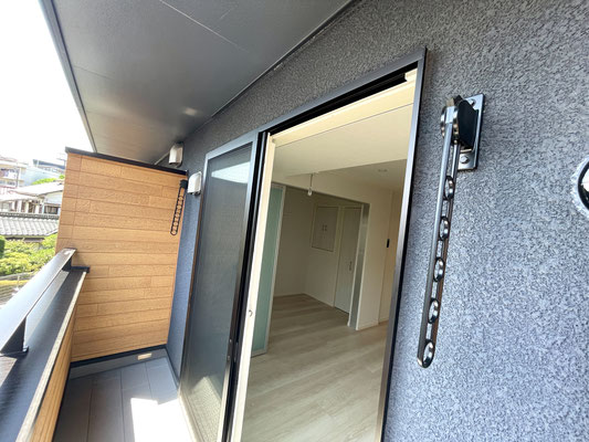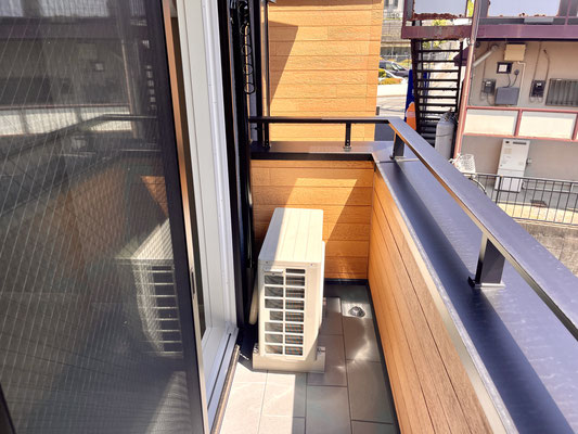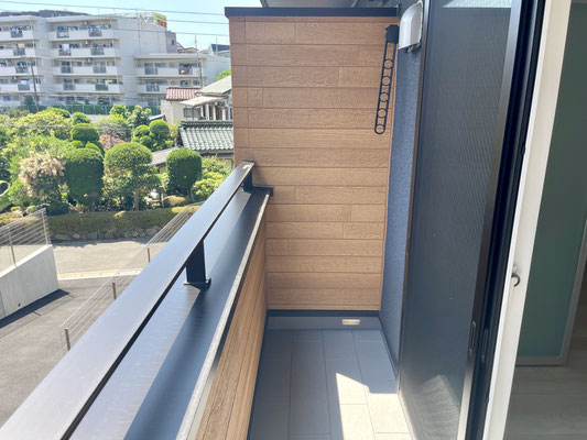 2階のバルコニーですが隣の建物とは十分に距離があり、開放的なバルコニーです。