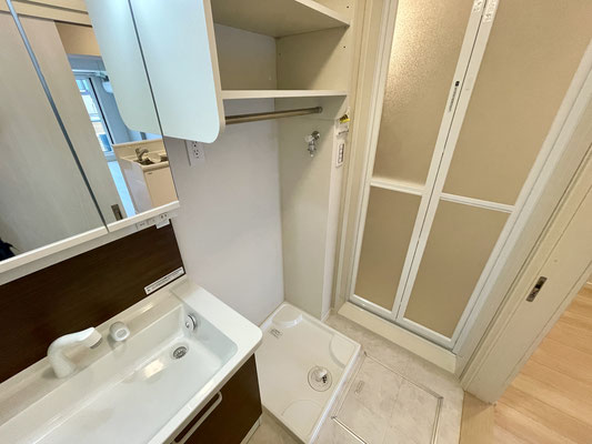 洗濯機置場上部には収納がありタオルなどの保管にも便利!