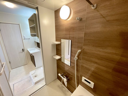 ナチュラルなウッド調のバスルームはリラックス出来る空間♪