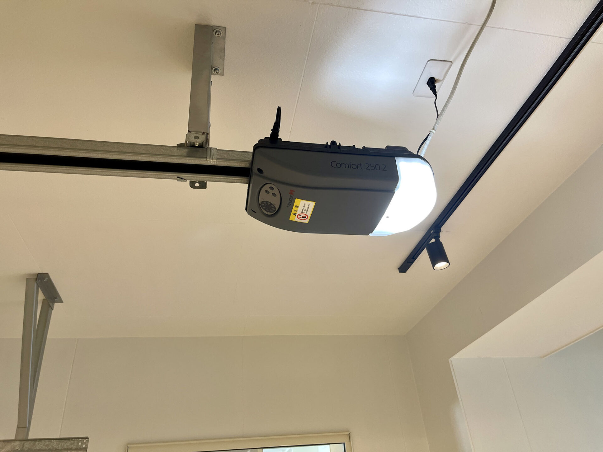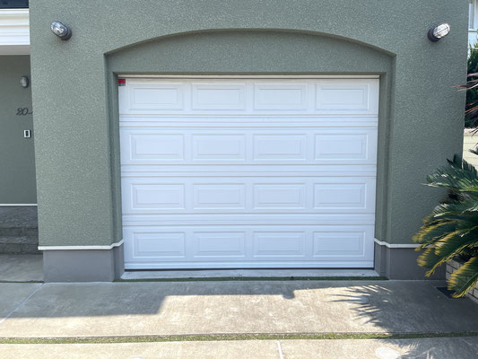 電動シャッターは外から見るとホワイト板チョコのようなオーバースライド型。