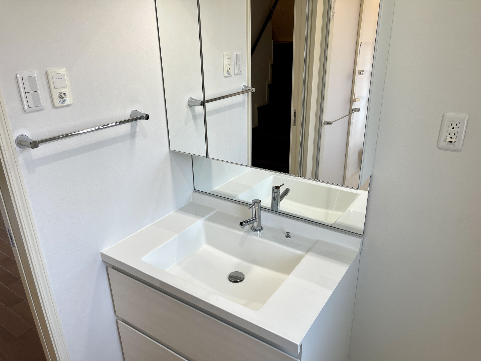 洗面台は大型で使い勝手が良さそうです。