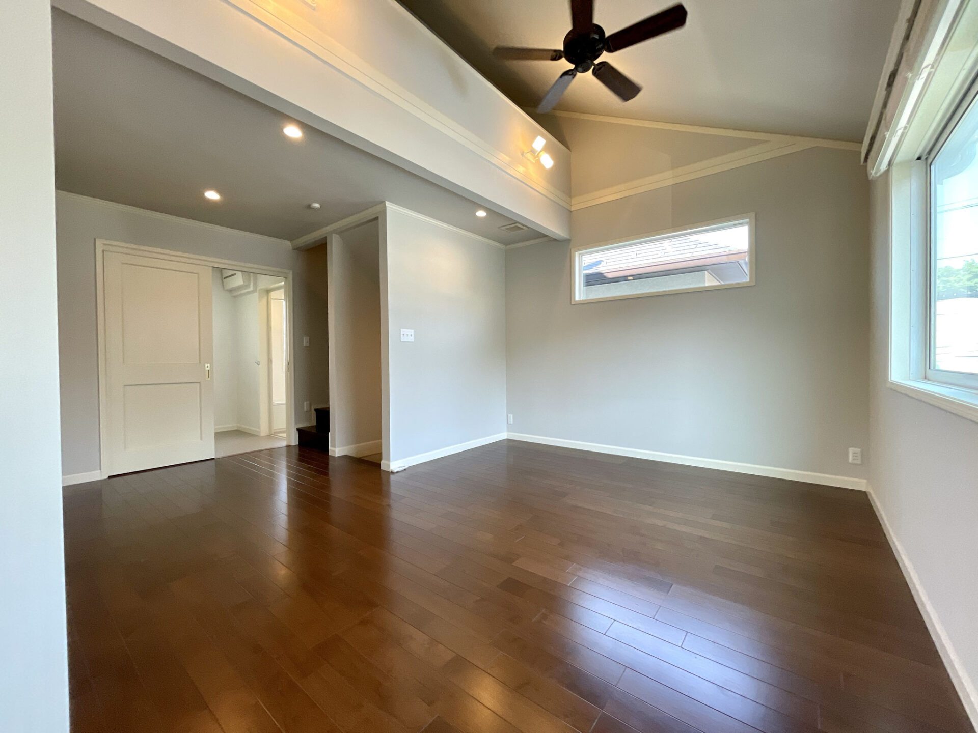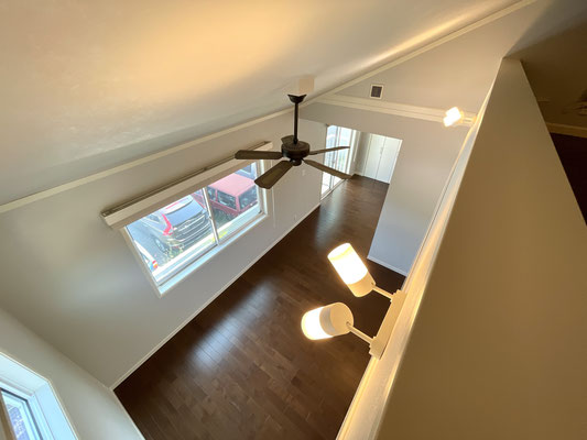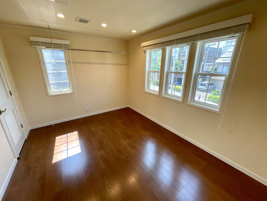 建物の外観で言うとガレージの上にある3連窓が特徴的なお部屋になります。
