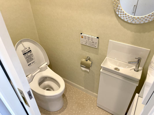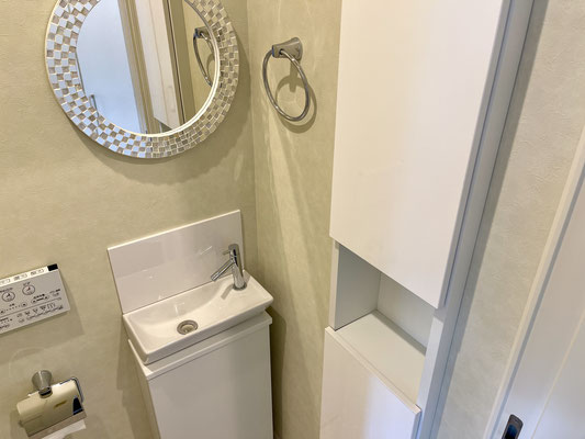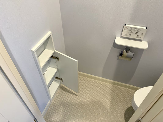 気が利く収納付きのトイレです。