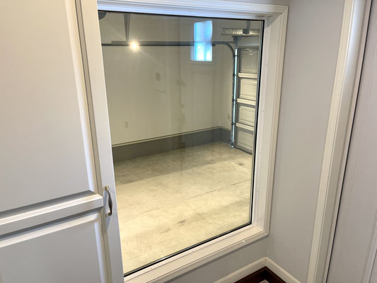 玄関を入ってすぐ目につくのはガレージが見渡せる大きな窓!