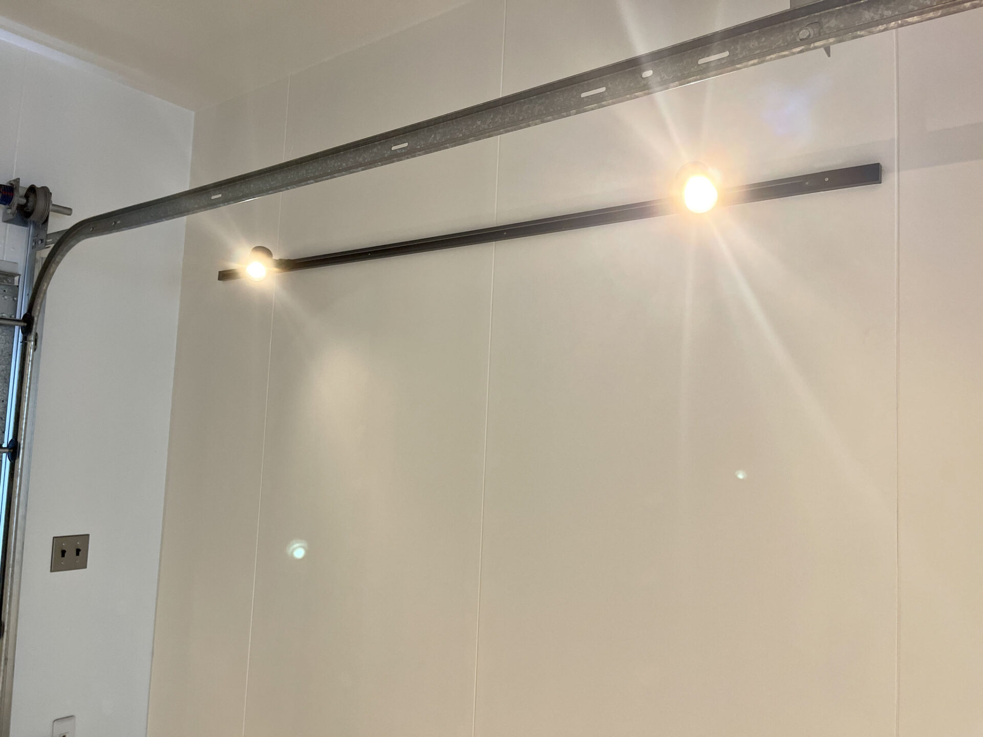 照明器具はライトレールが3本。左右の壁と奥の天井に付いています。