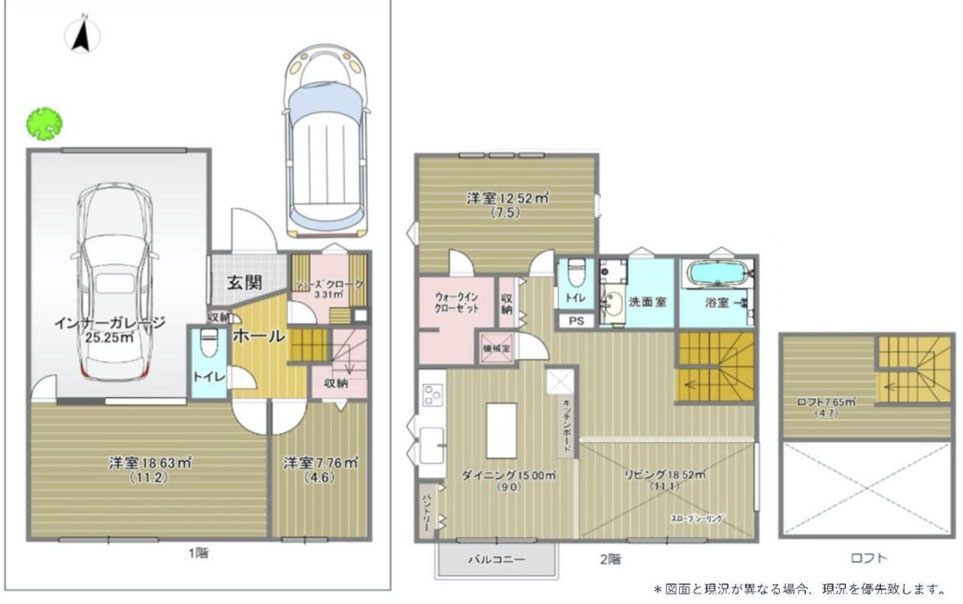 ガレージのサイズは25.25㎡ 間口が約2.7m