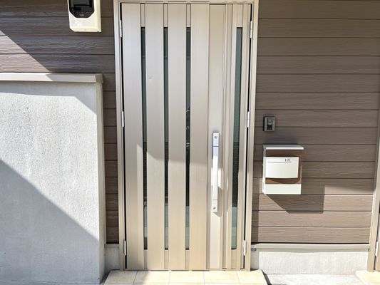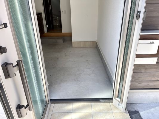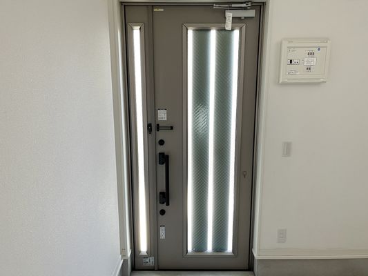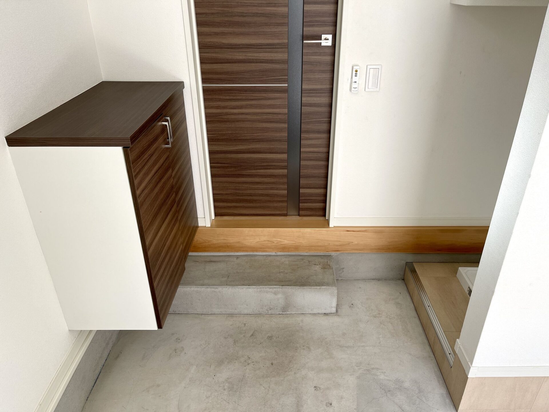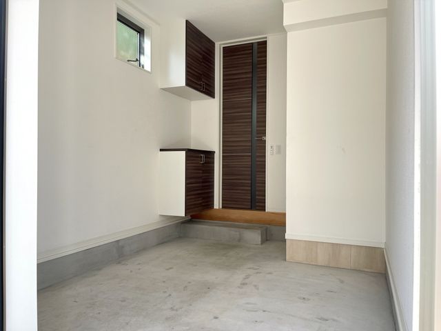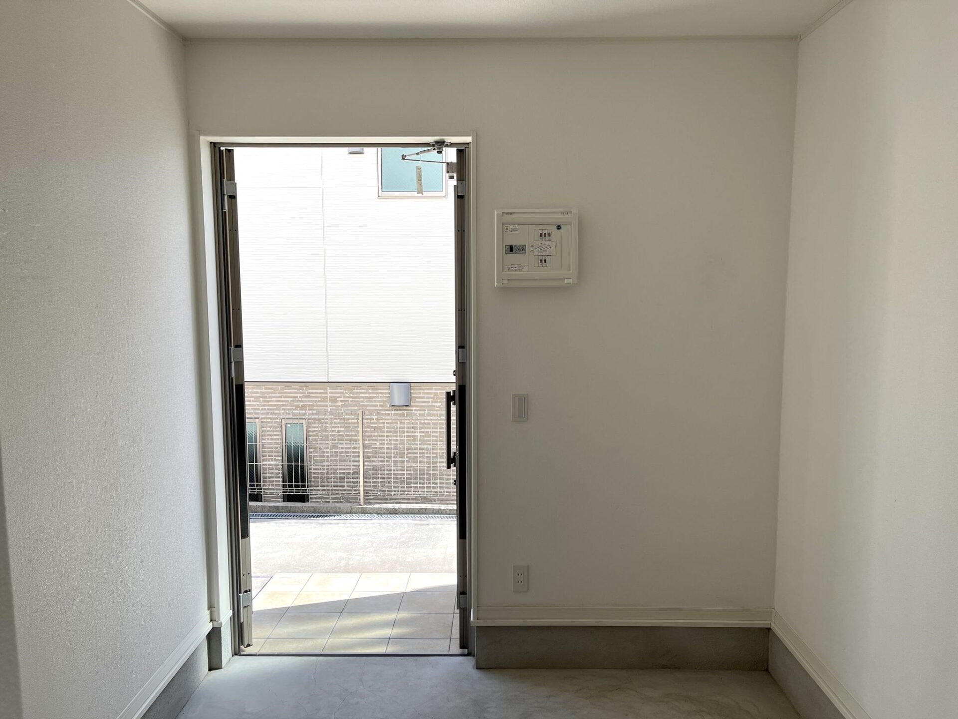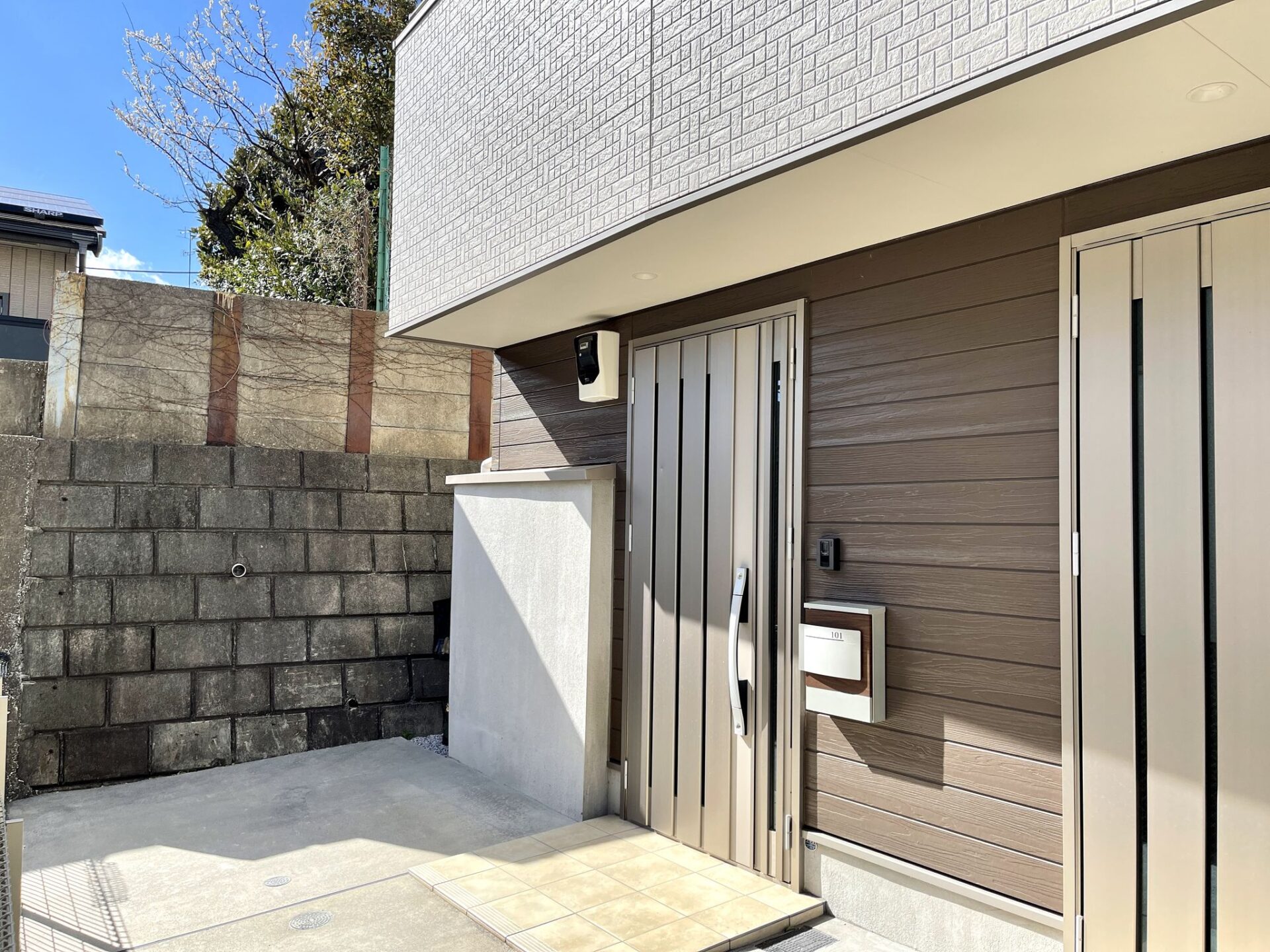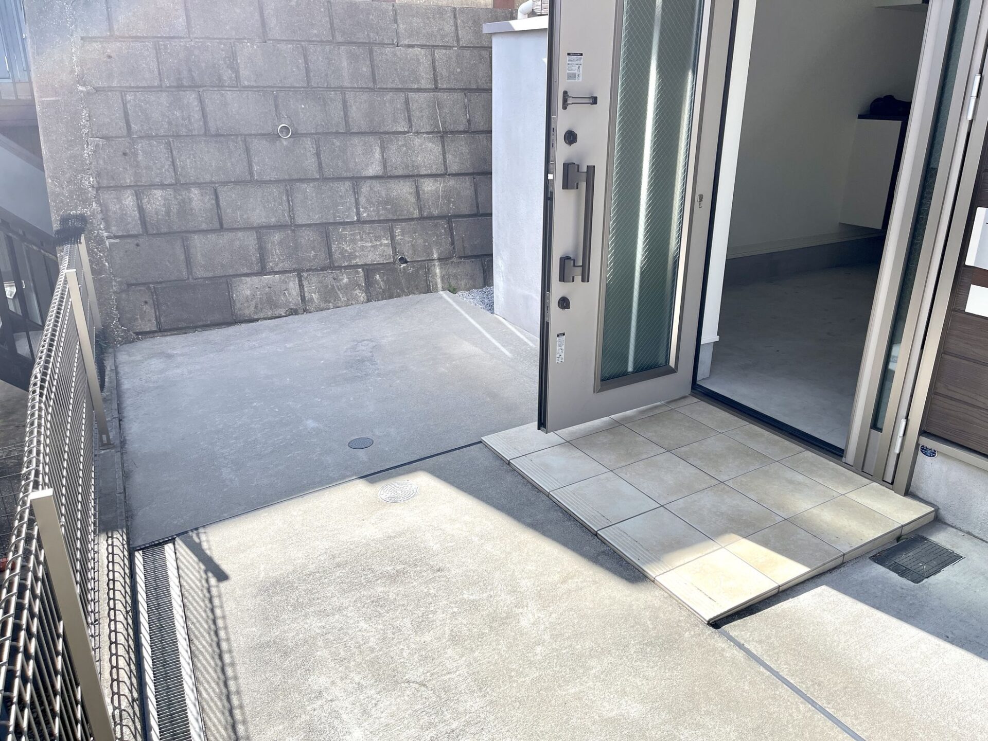 玄関ドアは車両の出し入れに便利な観音開きの親子ドアを採用!