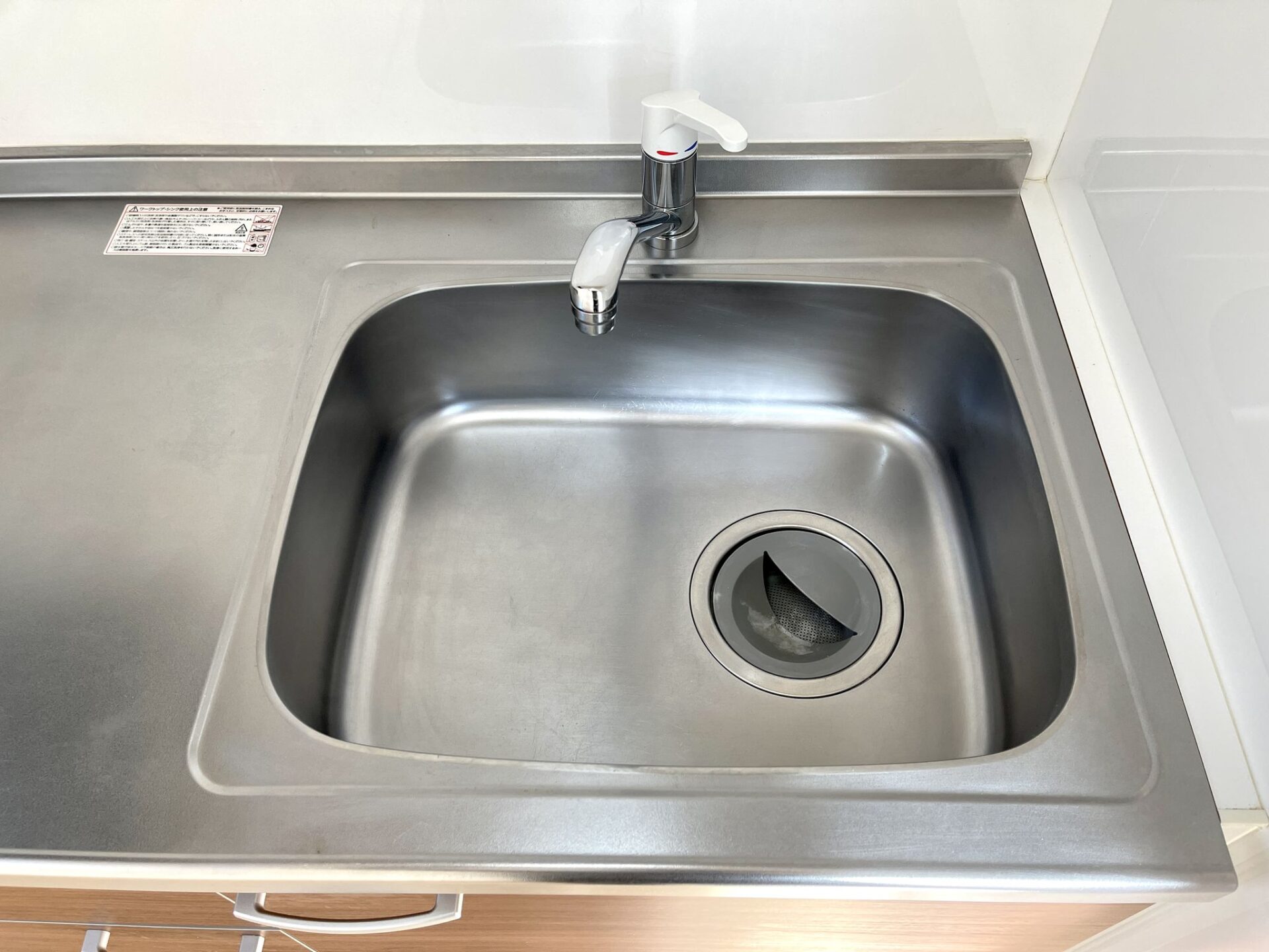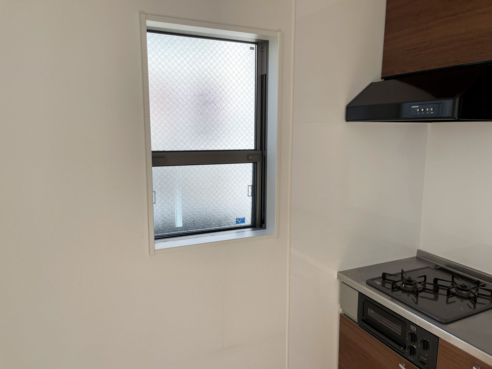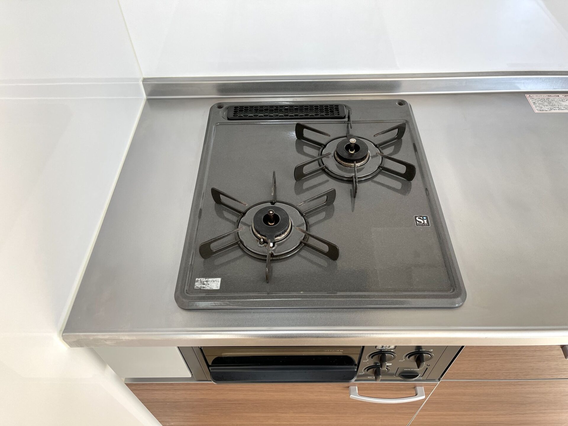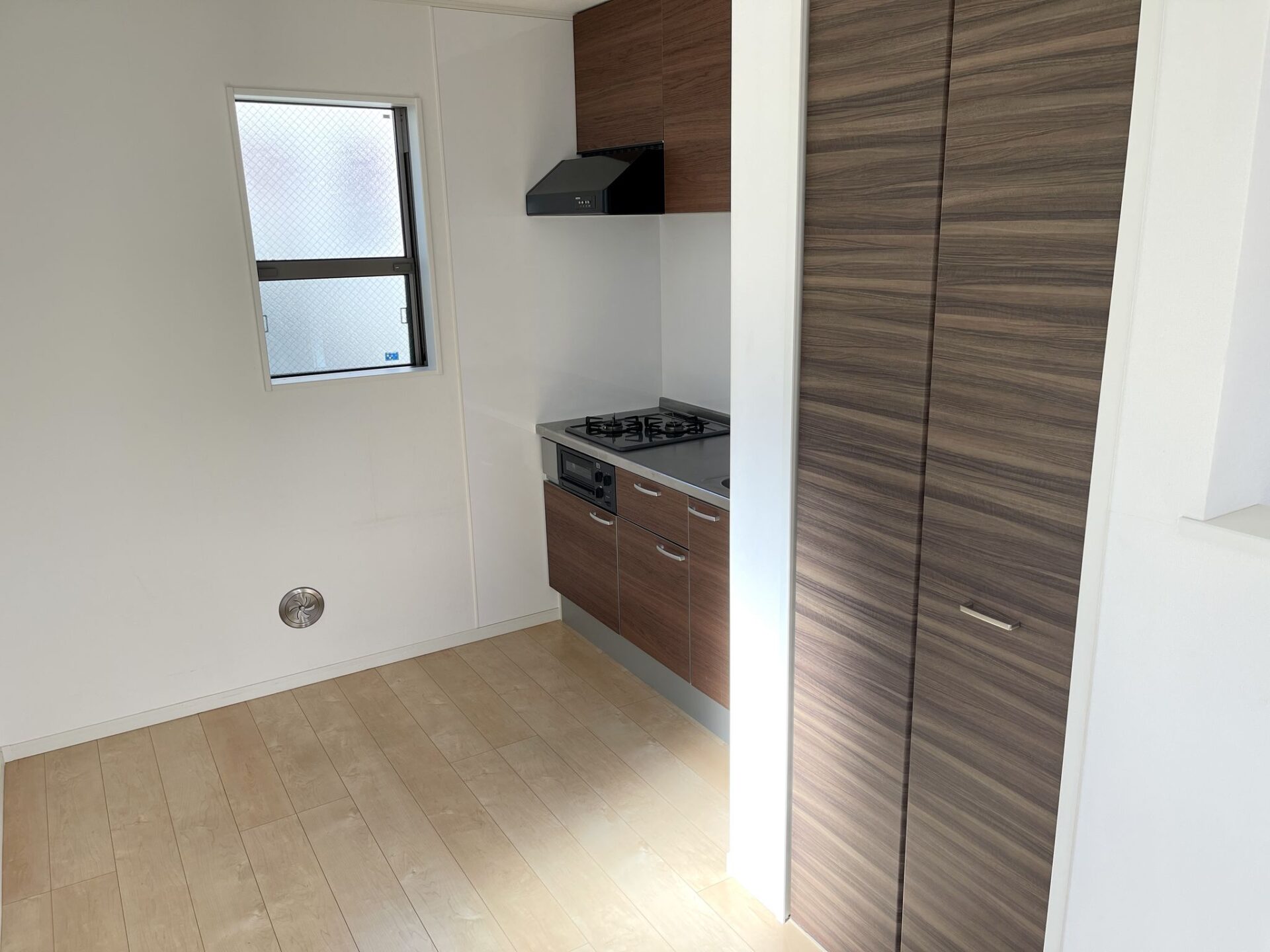 お部屋の奥にあるキッチンは使い勝手が良さそうなシステムキッチン。