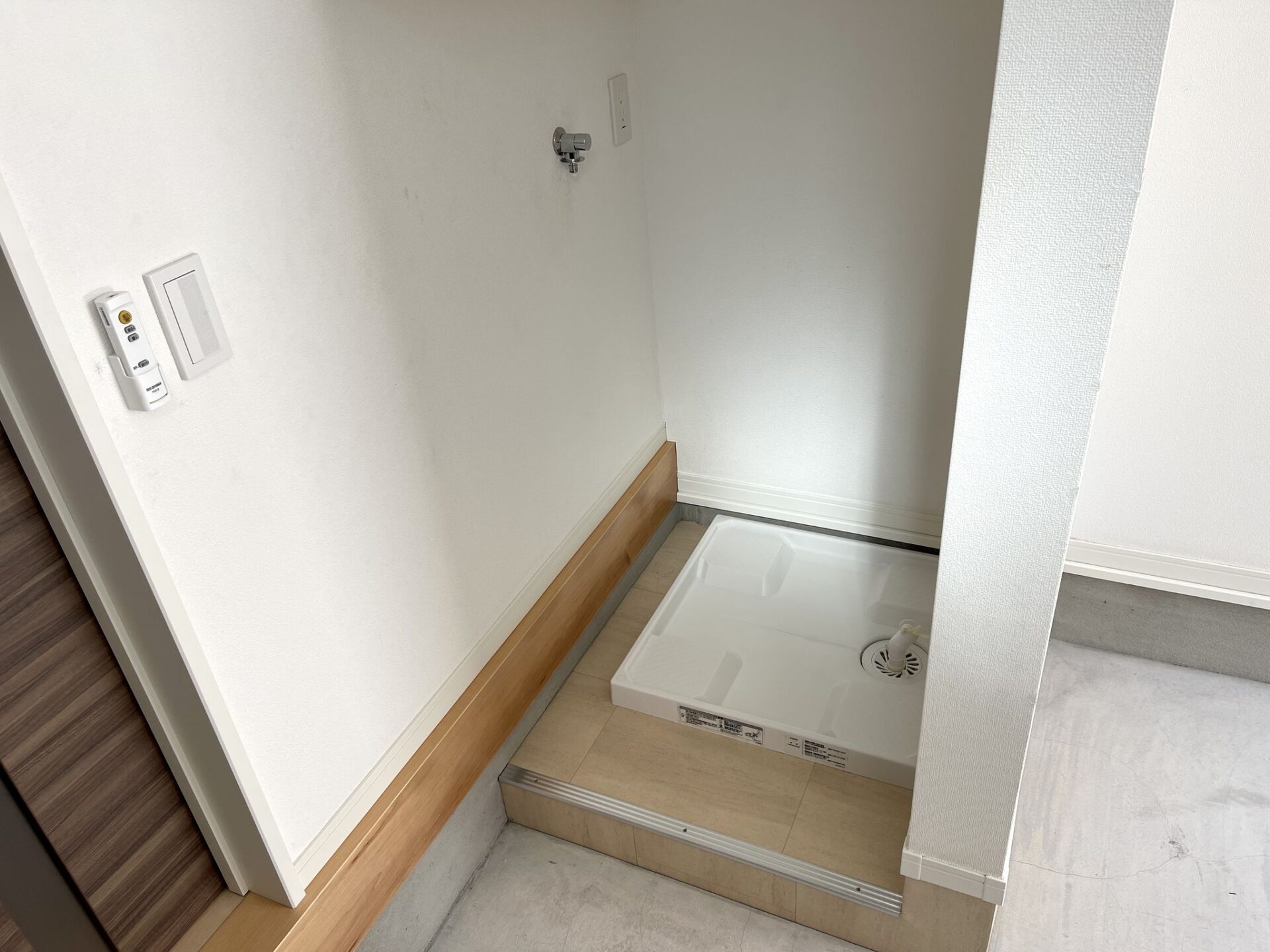 洗濯機置場の壁までが約2.7m 高さは低い所で約2.3m 高い所で約2.7m