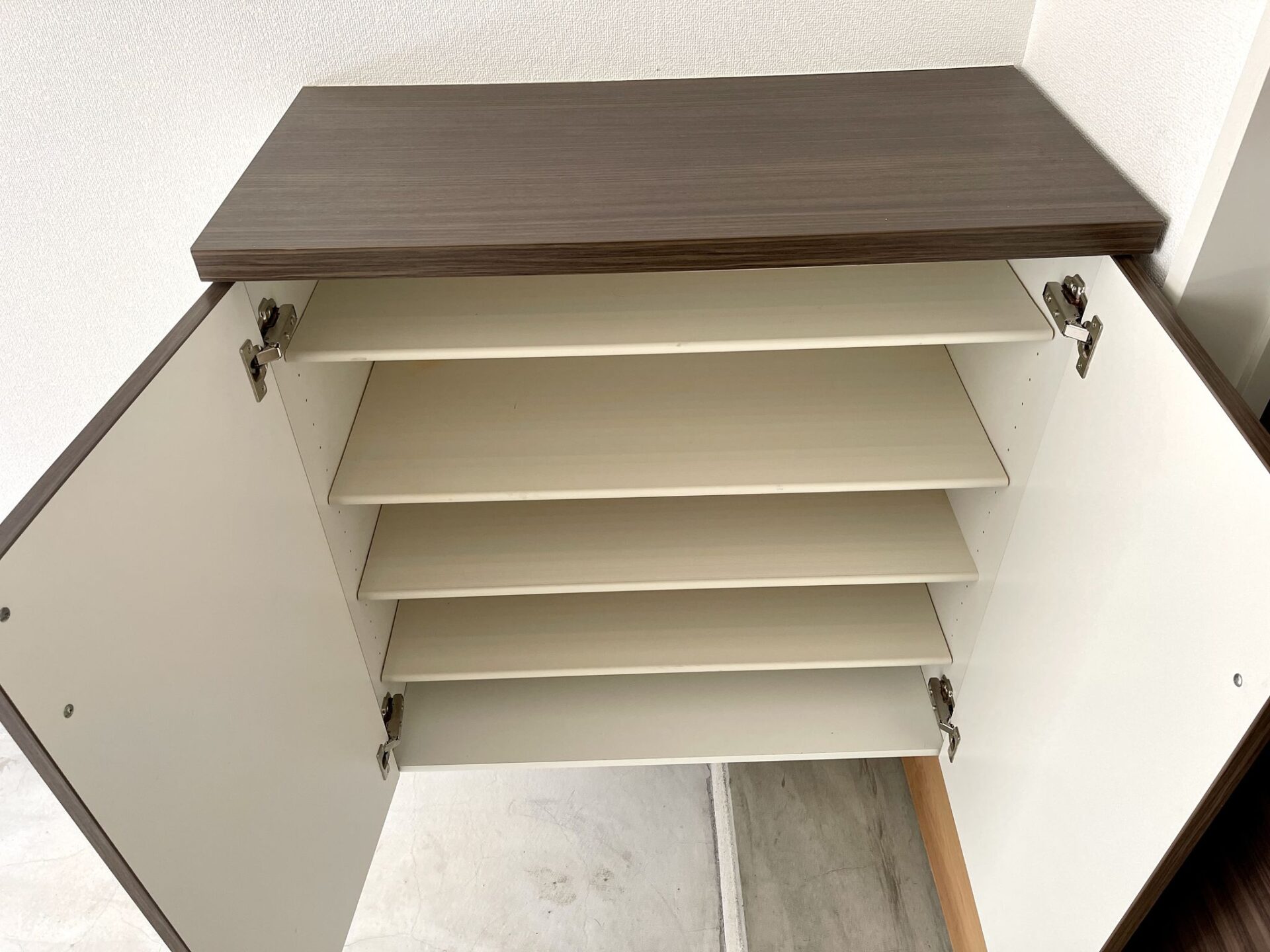 木目調の収納扉やキッチンでとても落ち着く空間です。