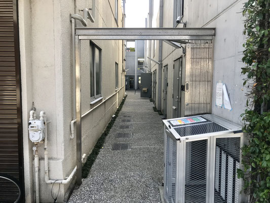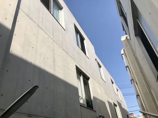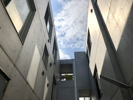 敷地内に入るとコンクリートの壁が無骨な印象を与えます。