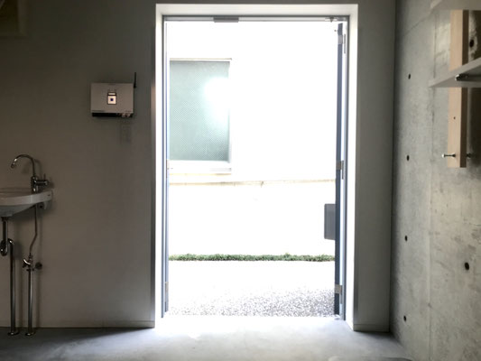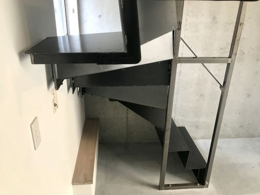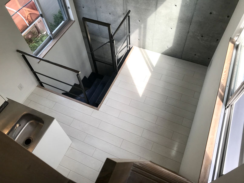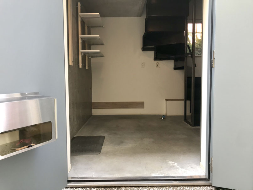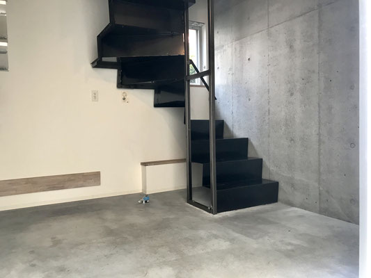 ガレージ内にあるスチールの階段を登ると・・・