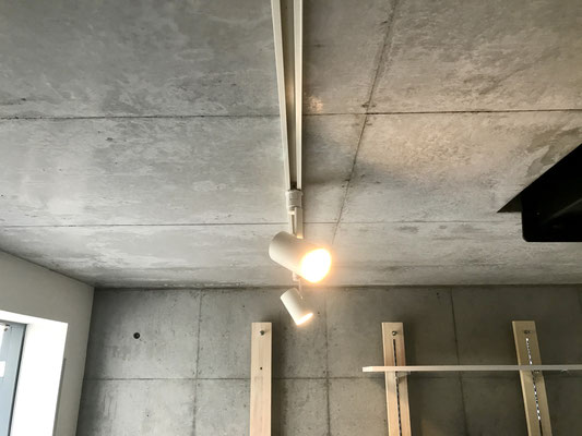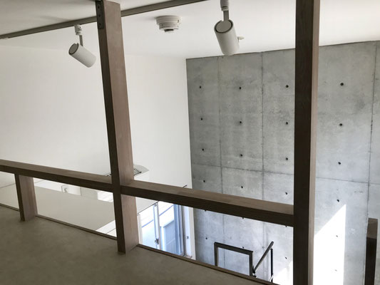 コンクリートの壁と爽やかな白系のフローリングがかっこいいですね〜