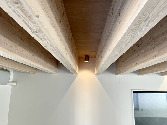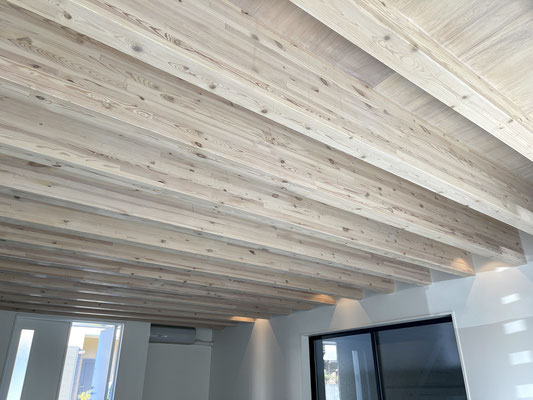 天井は無垢板が縁の下の力持ちで頑張ってくれています(笑)