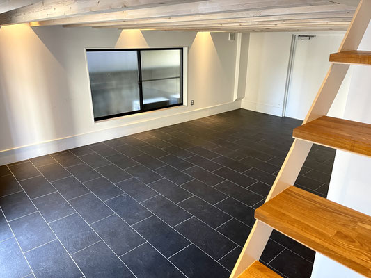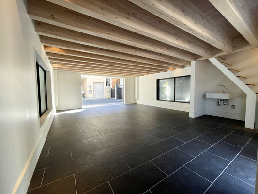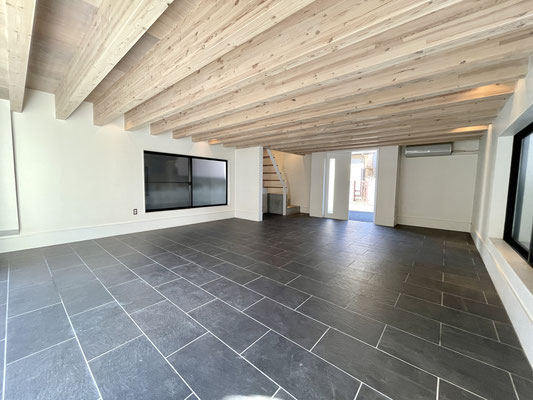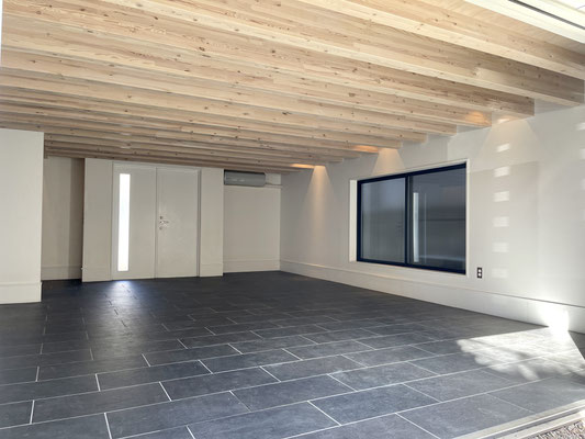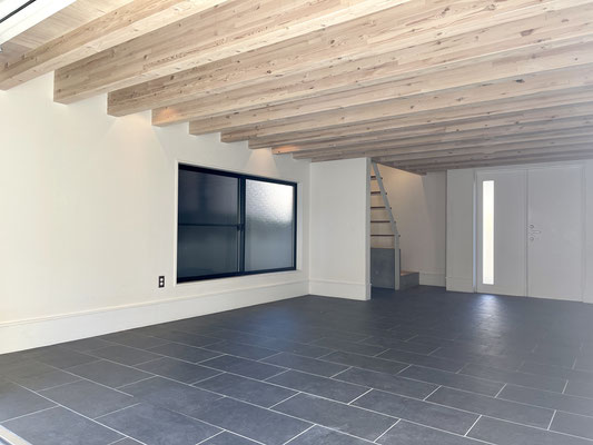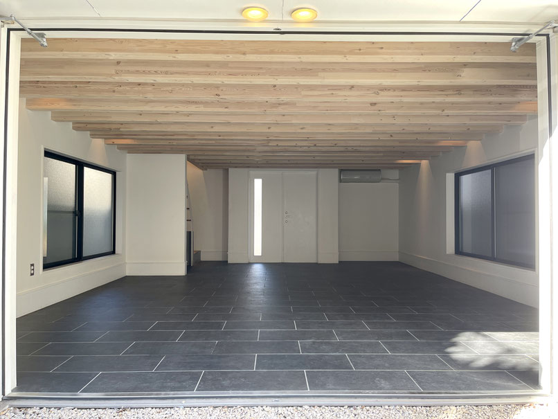 ガレージ床部分は他の物件ではなかなか見かけないタイル張り