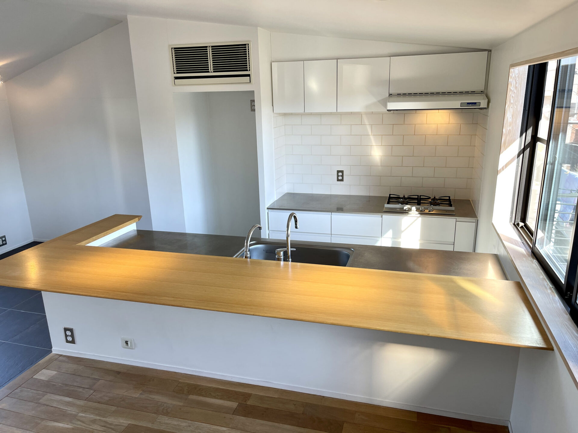 キッチンのカウンターは粋な料理屋さんのような造りになっています。
