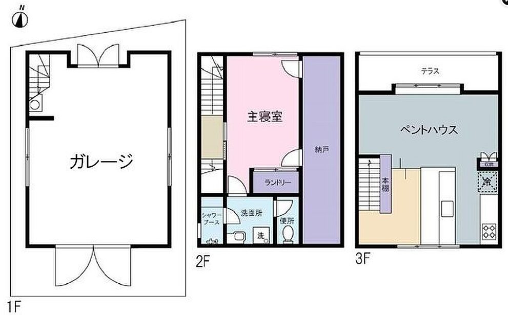 ガレージ床部分は他の物件ではなかなか見かけないタイル張り