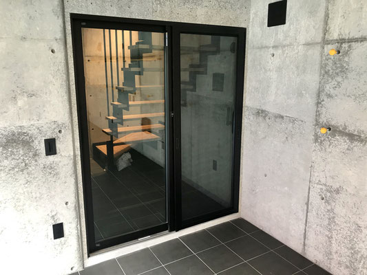 スライド式のガラス扉を開ければガレージに直接アプローチが可能です。