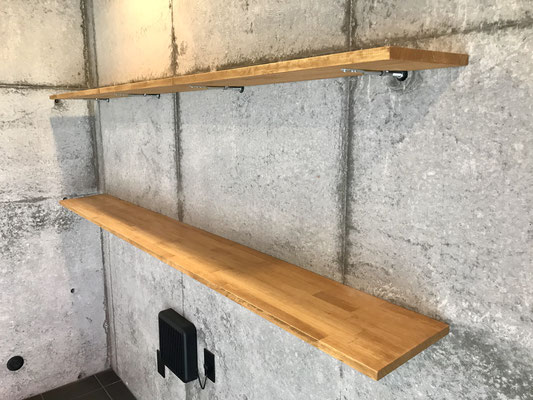 ガレージの壁には収納に便利な棚もあります。