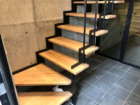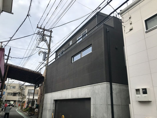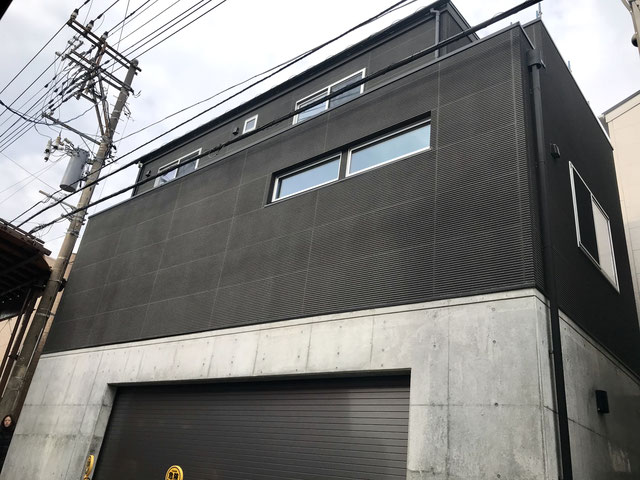2階と3階は黒い外壁で無骨で精悍なイメージ。