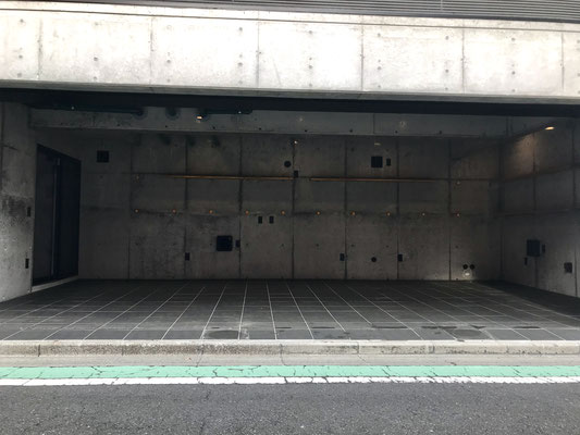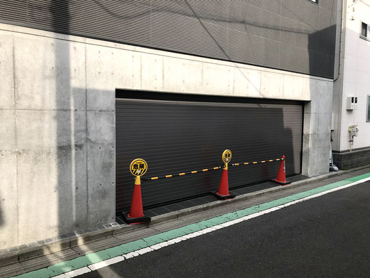 道路に面した大きなシャッターが印象的。