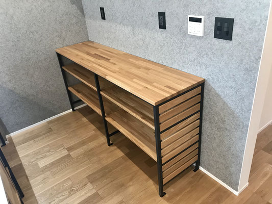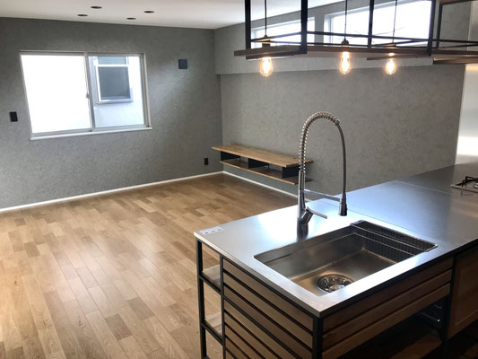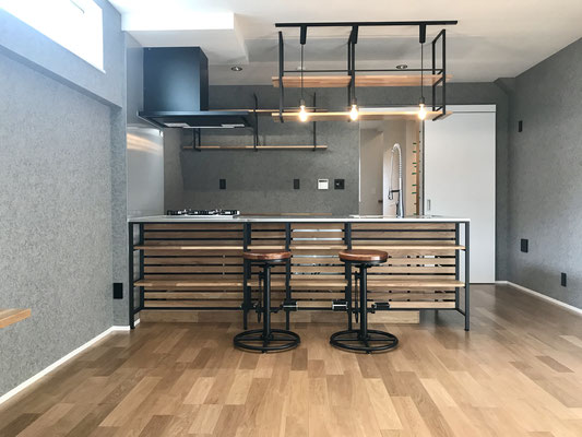 黒系の壁紙を使いインダストリアルな雰囲気・・・