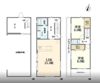 2階に登るとそこにあるのが15.3帖のLDK。