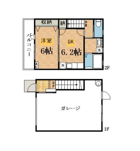 2階には水まわりの他に6.2帖のDK、6帖のお部屋があります。