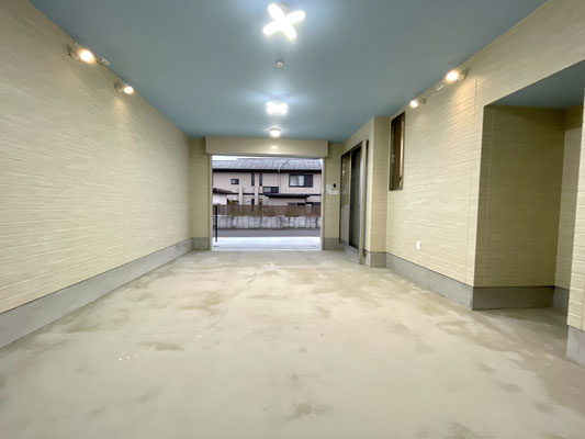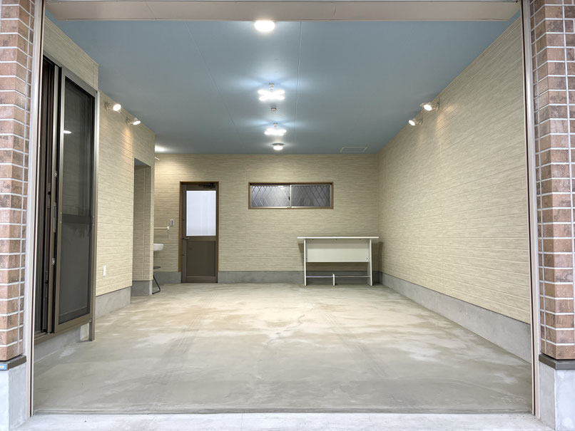 普通サイズの車両を入れてもまだ余裕がありそうな広々ガレージです。