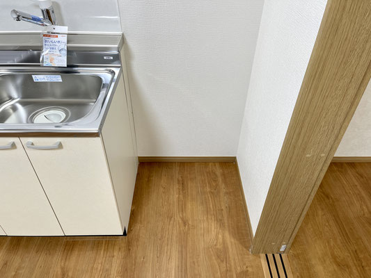 お部屋の中にあるキッチンは新品ピカピカなのにどこか懐かしいタイプのキッチン。