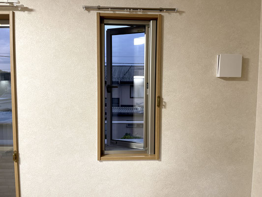 こっちにも換気が出来る小窓があって、その下に洗濯機置場〜