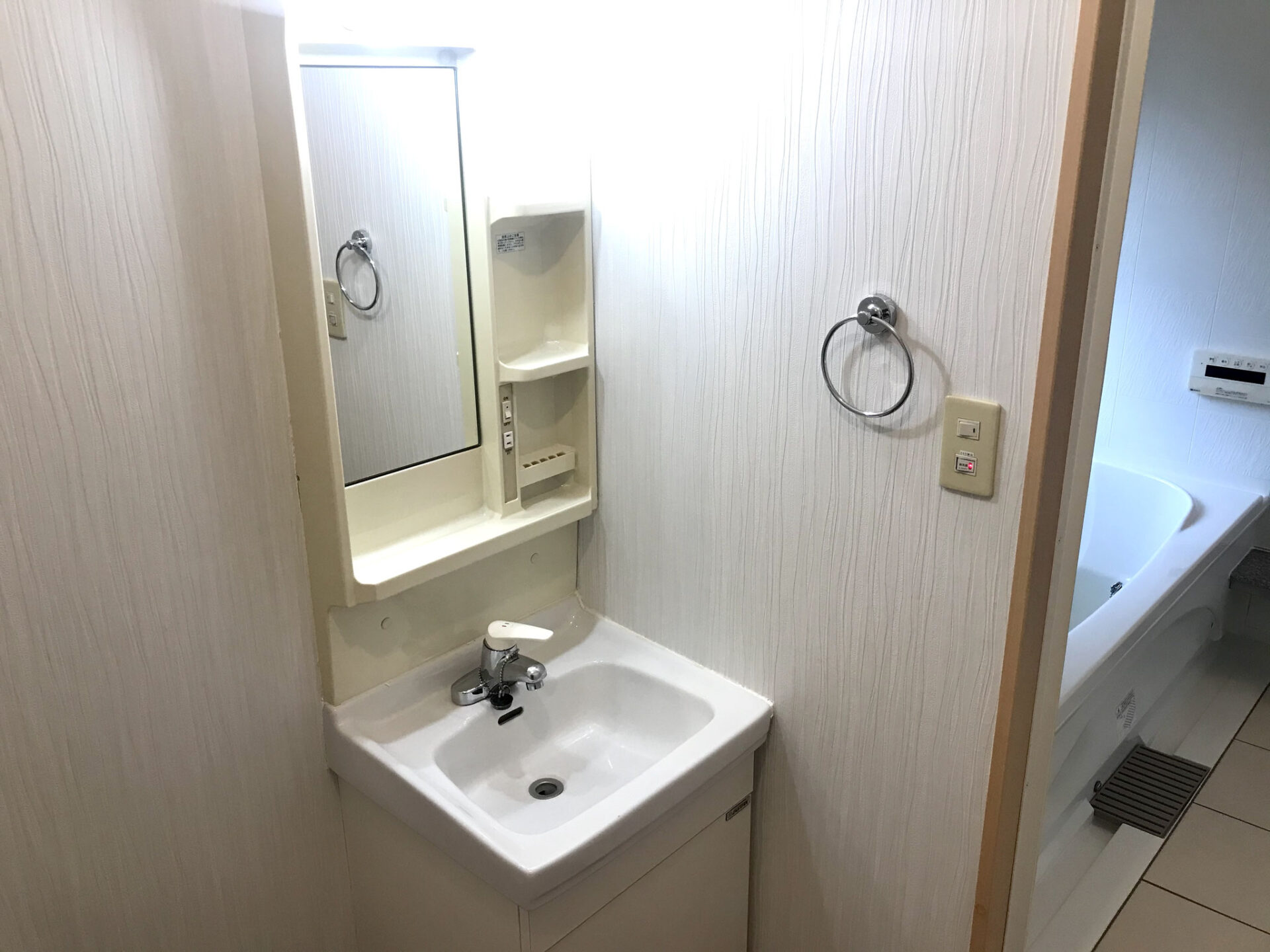 小型だけれど洗面台もあるから洗顔や歯磨きはここでできるね〜