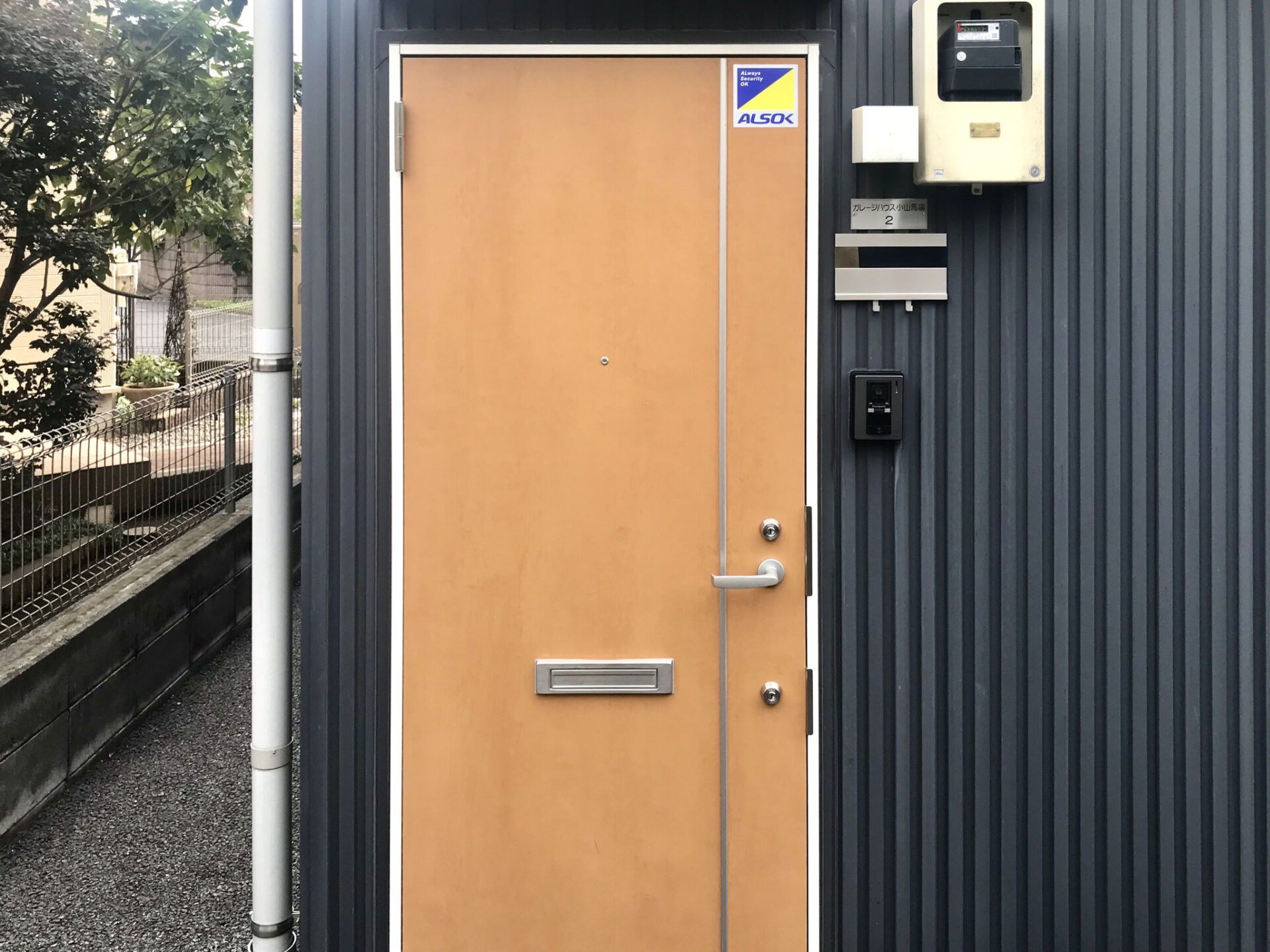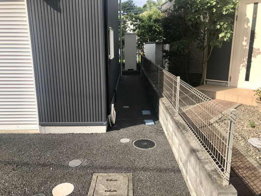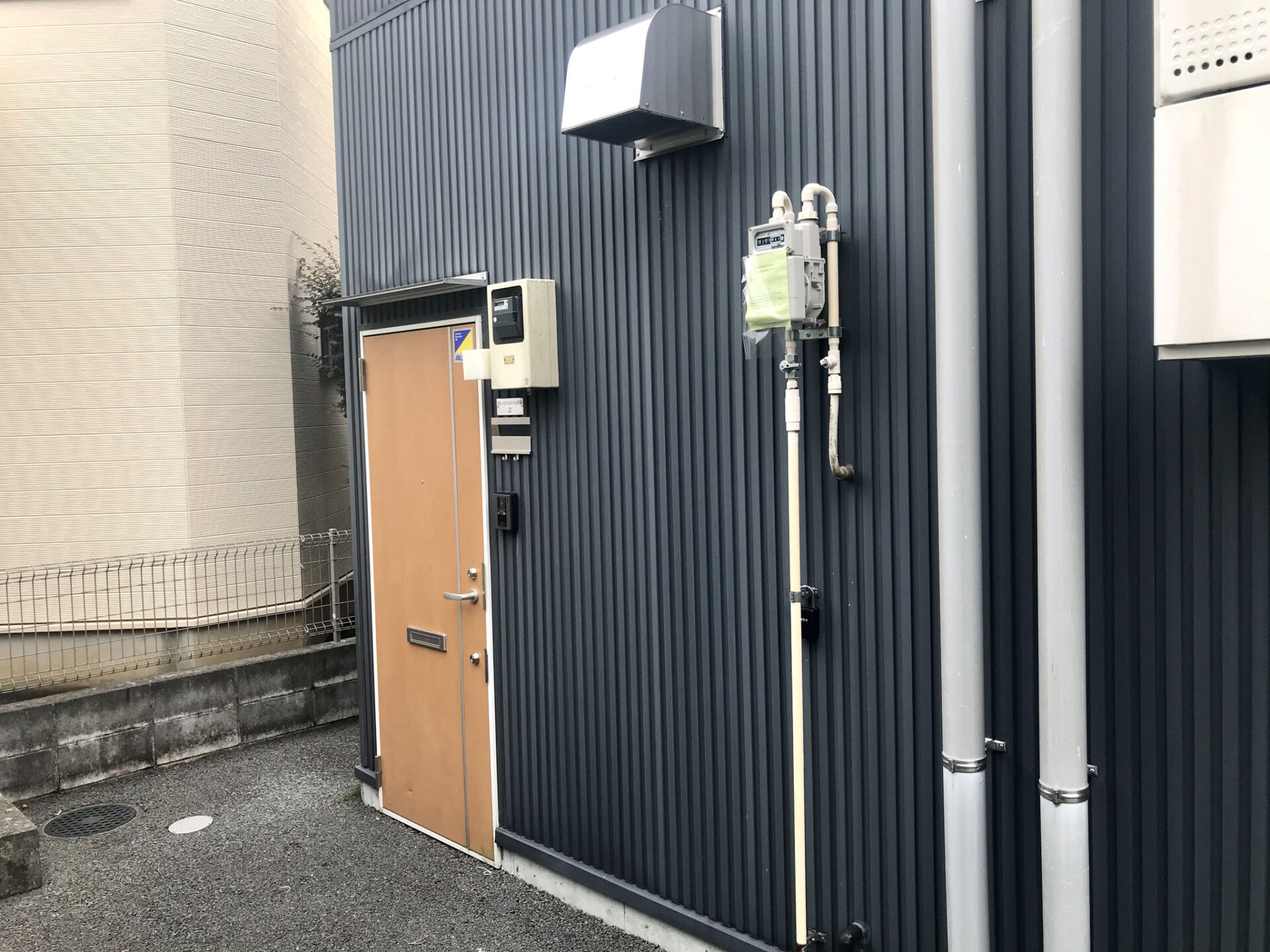 建物横の通路を使って裏手に周れば玄関にアクセス出来ます。