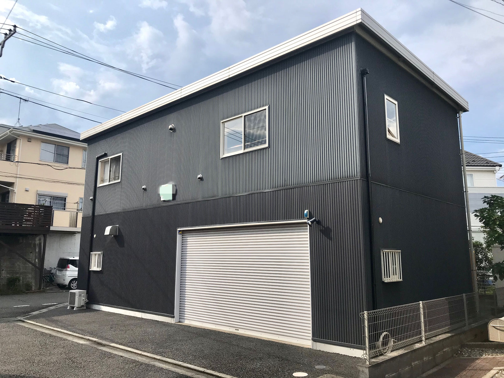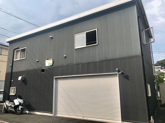 ガルバリウム鋼板でスッキリとした外観の建物です。