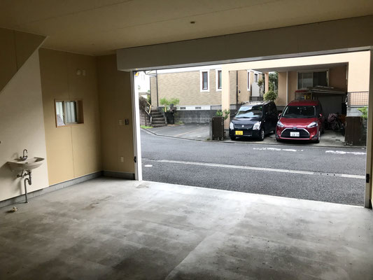 電動のシャッターを開けたらガレージ内部はこんな感じ〜