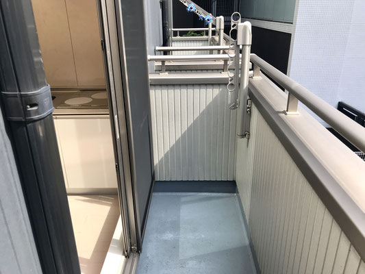 キッチンのすぐ近くには窓があり、バルコニーもあります。