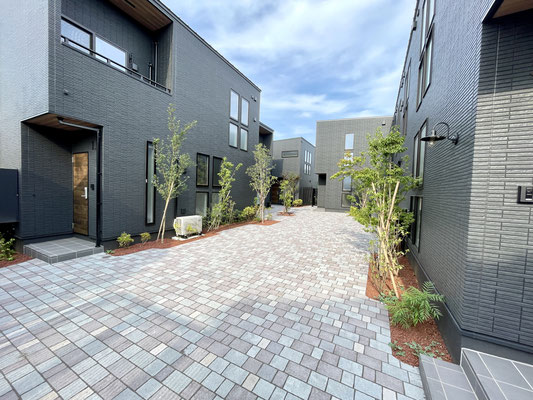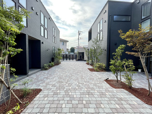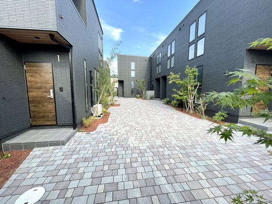 敷地内に入るとタイル舗装がされた広々した通路を通って各お部屋の玄関にアプローチ出来ます。