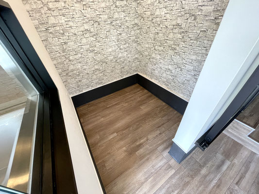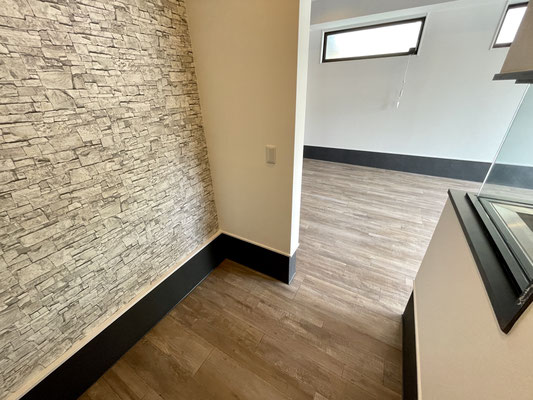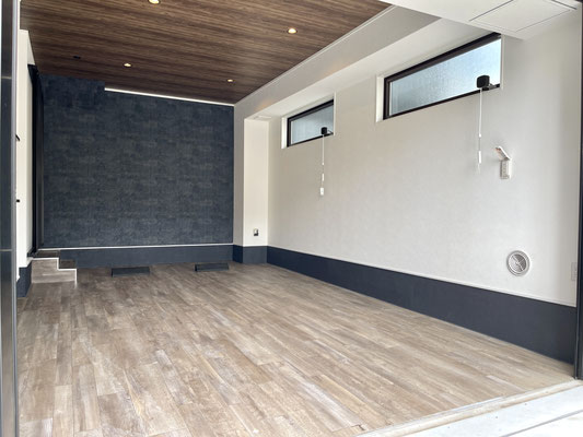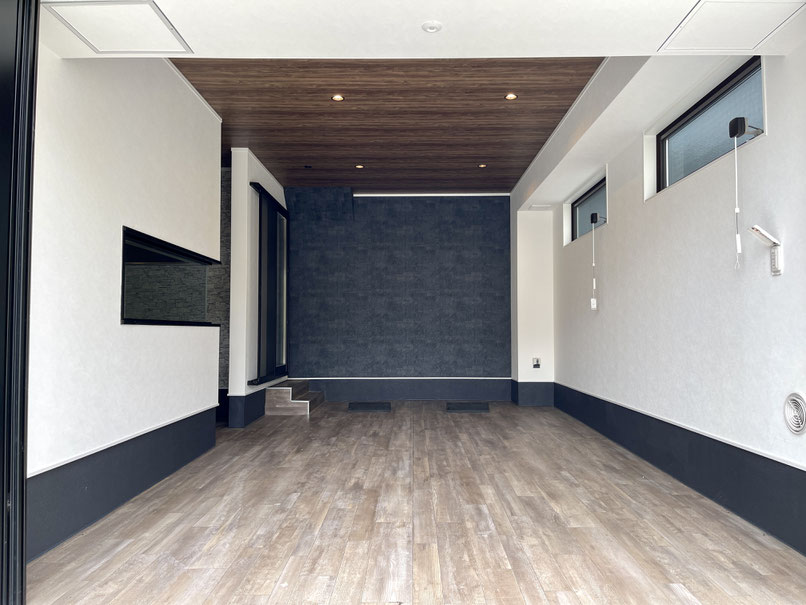 ガレージ奥はブラック系のアクセントクロスで全体的に高級感があります。