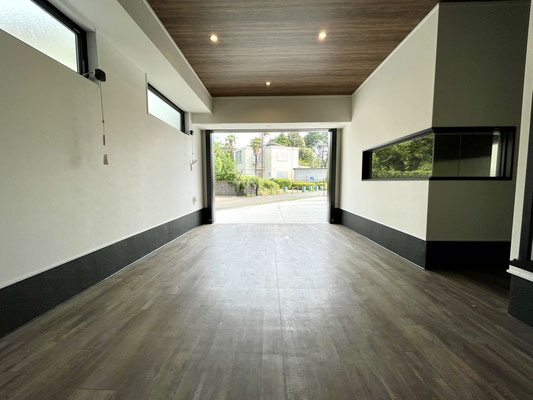 電動シャッターを開けるとガレージ内部はこんな感じ〜