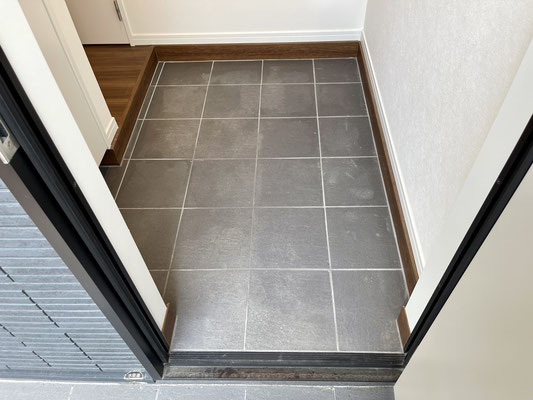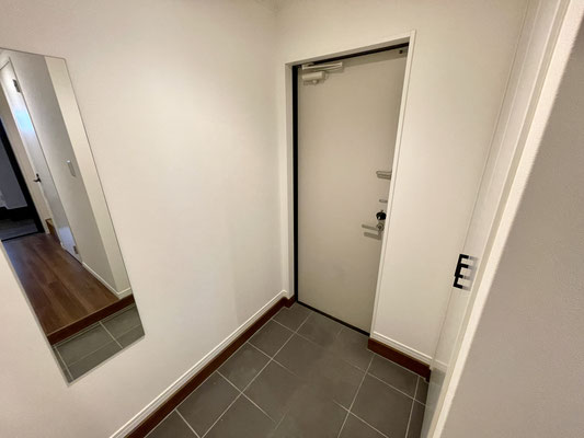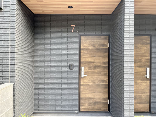 先程の正面側、エントランスを通って玄関ドアへ・・・