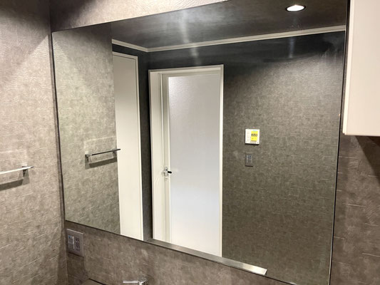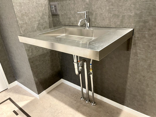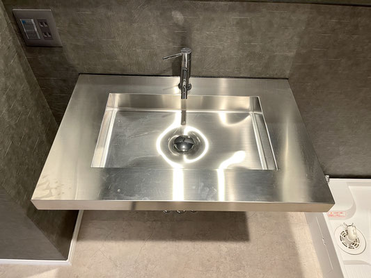 壁のステンレスはヘアライン仕上げですが、一部は鏡面加工がされています。