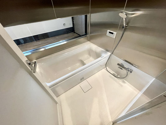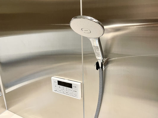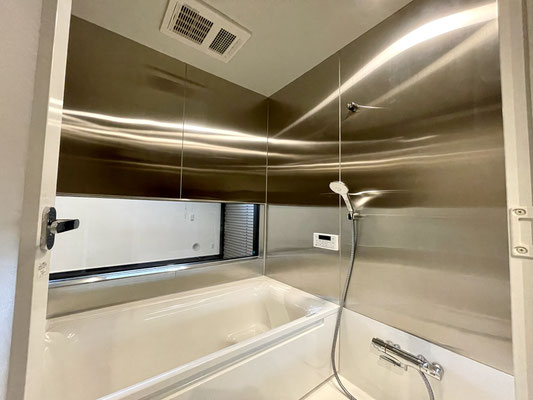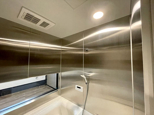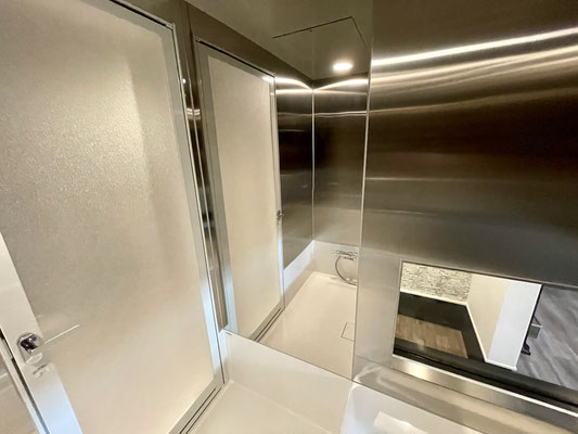 まるで厨房のようなステンレスのバスルームも特別な空間です♪