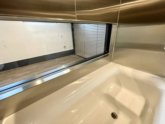 そしてゆったりサイズのバスタブからはガレージの内部が覗けます!